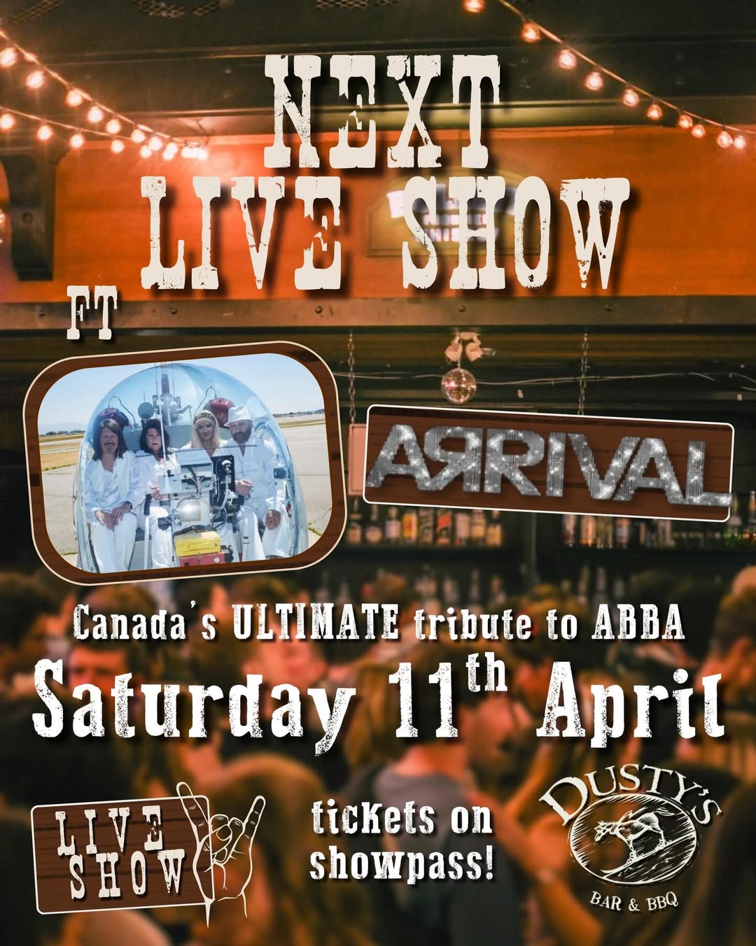 Dusty’s is proud to welcome – Arrival Canadas tribute to Abba the 6th installment of this years tribute series.